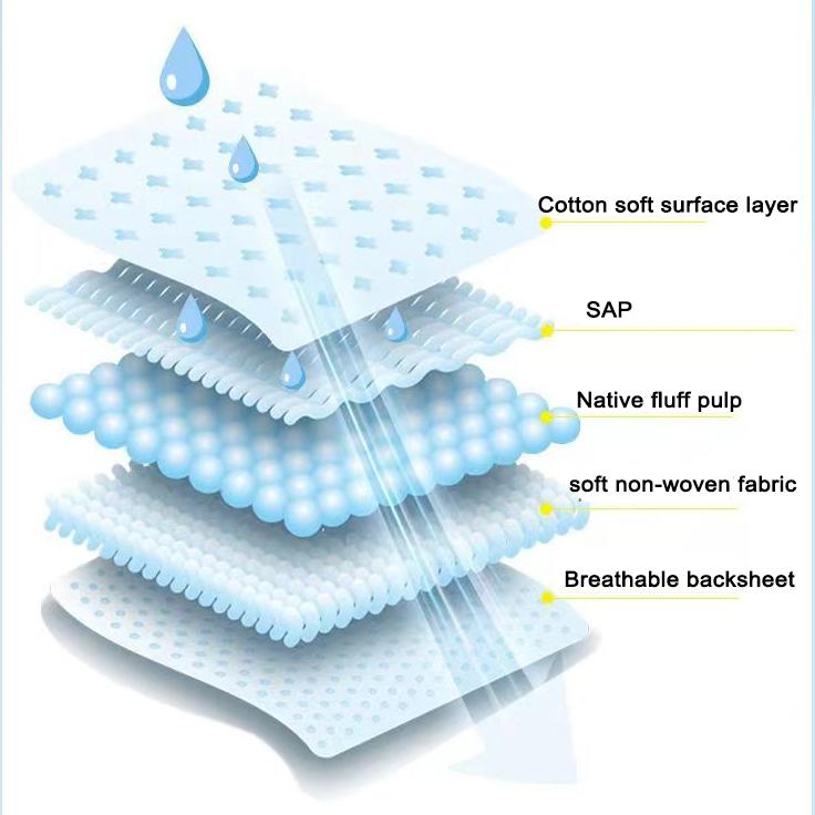 قلب القطن الطبيعي والمريح: لب الزغب الأمريكي + SAP + منديل مع نقش معيني يضمن امتصاص سريع وعالي.